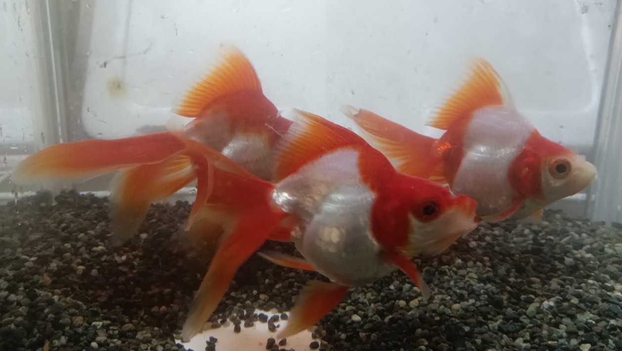 モチのロンで、らんちゅうあたりの金魚も絶好調(゜))<<